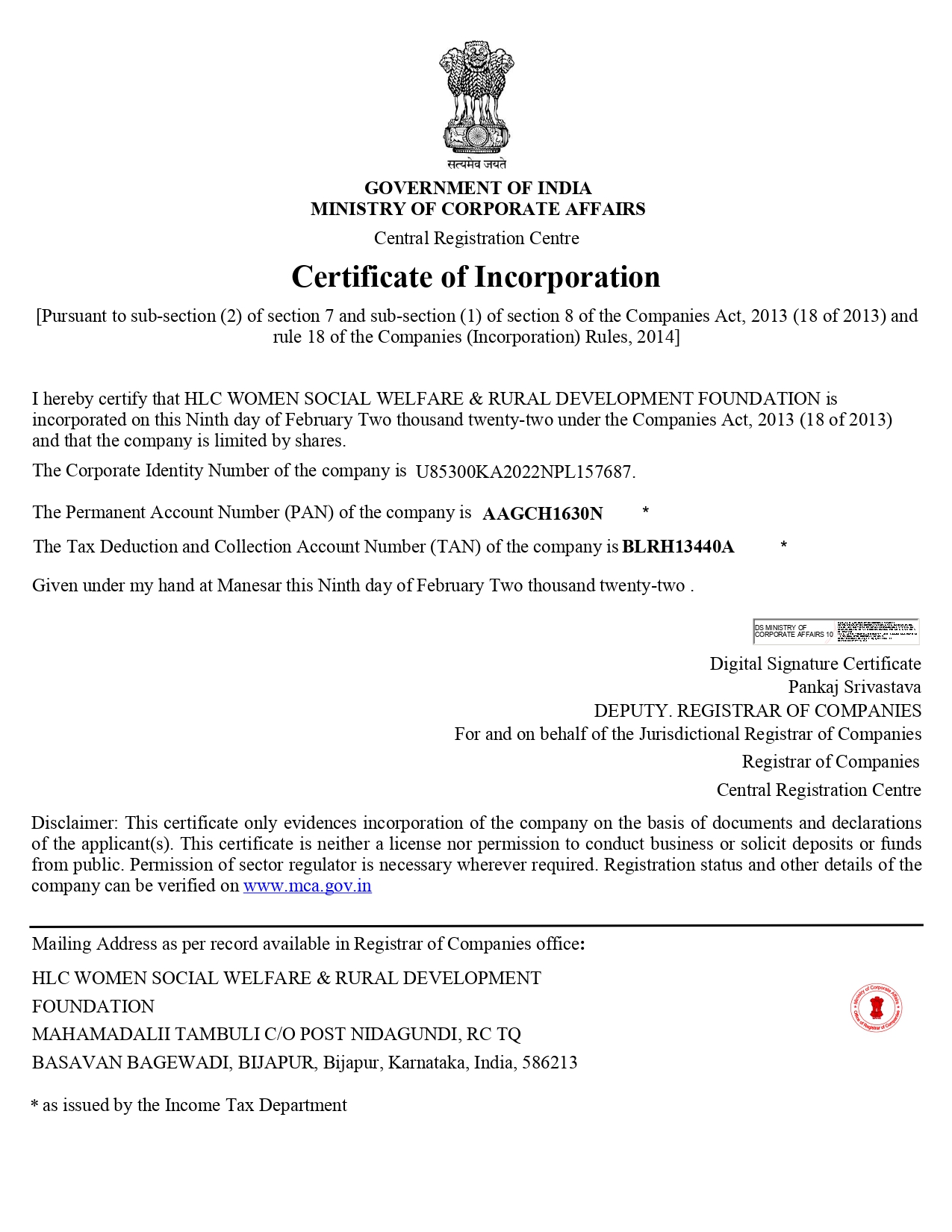 Registration Certificate